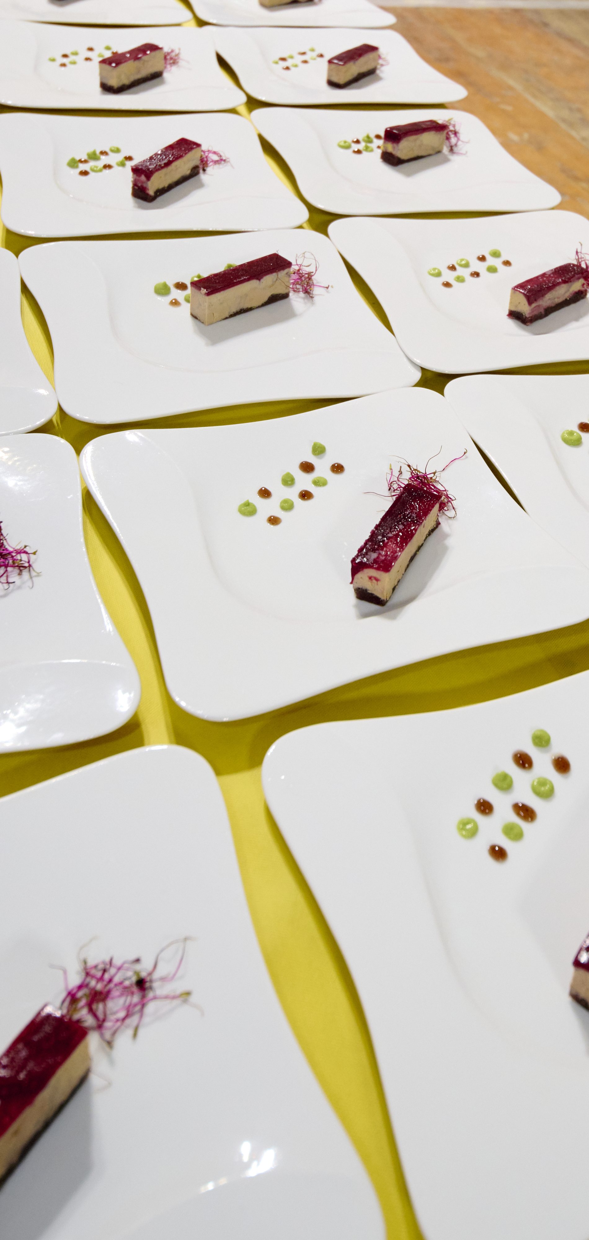 Buchette de foie gras aux fruits du mendiant, glaçage au Beaujolais, chutney d’échalottes et pommes au Gamay